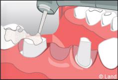 Pour réaliser un bridge, une première étape consiste à préparer les piliers afin de les réduire et les rendre parallèles. Si elles sont trop abîmées, le chirurgien-dentiste peut avoir à reconstruire les dents de soutien.